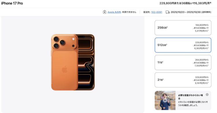 iPhone17Pro Maxの512GBであれば、22万なので、1発でMaxのキャッシュバックです。